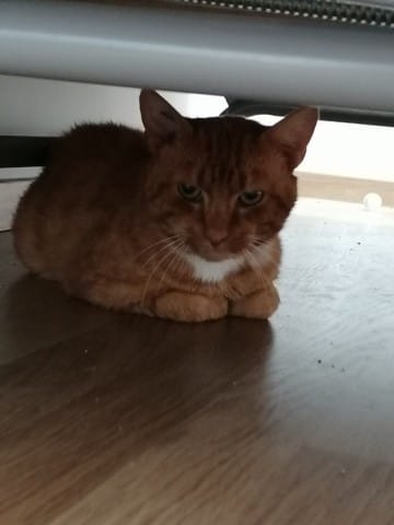 Il y a 2 semaines j'ai récupéré un chat dans une association (pas la spa). Je le voyais traîner dans ma rue depuis quelques temps et il semblait en mauvais état. Il ne se laissait pas approcher. J'ai prévenu l'association de ma localité qui a procédé à sa capture à l'aide d'une cage trappe. Dans la journee s'était fait. Le lendemain ils l'ont emmène chez le vétérinaire pour le faire castrer et identifier. Son âge à été estimé à 4 ans environ. Ils ne pouvaient pas le garder car trop d'animaux chez eux actuellement. Donc 48h après sa capture je l'ai pris chez moi pour lui éviter un retour dans la rue. Cela fait 2 semaines et il reste caché sous un lit d'une chambre inoccupée à l'étage. Il s'alimente très bien depuis le début et à compris la caisse en 24h. Seulement je m'inquiète de le voir caché sous le lit depuis 2 semaines.... J'essaie de ne pas le brusquer, je lui apporte des petits bouts de jambon tous les jours qu'il vient manger du bout de mes doigtssous le lit. Toutefois quand je rentre dans la pièce où il se trouve (j'ai mis toutes ses gamelles et sa caisse dans cette pièce depuis le début) il crache.