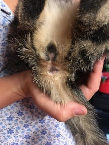 Pour vous rassurer, vous pouvez palper doucement les parties génitales de la petite noire. Si vous sentez deux petites boules, même minuscules, c'est un mâle. Certains mâles ont parfois les testicules qui mettent du temps à 'descendre', mais vous devriez quand-même sentir un petit quelque chose à la palpation. Chez la femelle, la vulve est de la peau bien souple sans aucune 'petites boules' à la palpation.