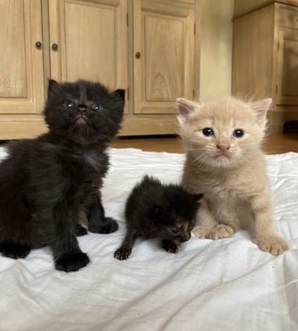 Alors voilà, ma chatte a accouché le 7 janvier 2020, 3 petits bebou bien poilus. Mais voilà plus les jours passent et nous avons remarqué qu’un des bébés ne grandissais pas, elle était très maigres et avait la peau sur les os. Petite photo pour voir la différence avec les autres