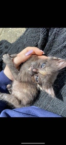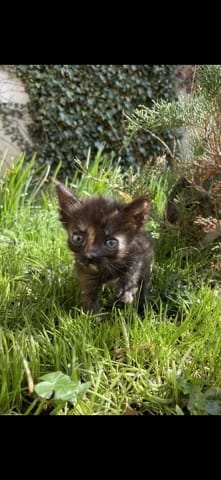 Aujourd’hui prénommé « Miette », 2 mois et 6 jours, elle fait 450g et est toute simplement minuscule, elle grandit très peu mais à le même comportement que ses frères et sœurs, elle joue, mange des croquettes ramollies dans du lait, elle est très câline et c’est un bon petit rayon de soleil au quotidien. Malgré son physique atypique, miette vit comme les autres chats malgré son handicap. Je ne saurais pas vous dire si elle finira par grandir comme un chat normal, mais nous n’avons remarqué aucun souci de santé mis à part sa petite taille et nous avons rendez-vous chez le vétérinaire pour les vaccins étant donné qu’elle vient d’avoir deux mois ( nous avons préféré attendre de voir si elle survivrait avant de l’emmener chez le vétérinaire)
