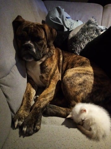 Ce jour j'ai trouvé un petit chaton d'un mois voir 1 mois et demi, tout mignon bien sûr je n'ai pas eu le cœur de le laissé. Je l'ai nettoyé et je vais voir un vétérinaire demain matin si j'en trouve un ouvert. Mais il y a quelque chose qui me chiffonne et ayant 2 chiens à la maison et 3 enfants je m'inquiète. Je me demande si il n'a pas la teigne.... Il n'y a pas de plaie, pas de croûte juste plus de poils... Qu'en pensez vous s'il vous plaît?!