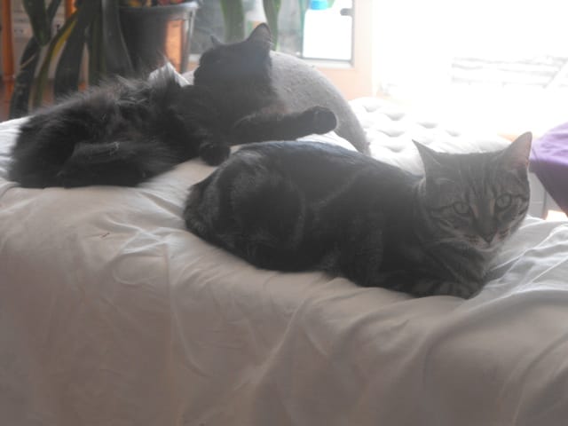 Bonjour à tous ! Je vous explique mon histoire, j'ai adopté, il y a deux ans un chat à la spa, puis un deuxième un an et demi après, je l'ai récupéré auprès d'une amie qui devait s'en séparer suite à des problèmes de santé. La cohabitation s'est avéré difficile, mon premier chat, étant sujet au cystite, s'est bouché l'urètre deux fois de suite depuis, j'ai d'ailleurs du l'opérer, urestrotomie, afin d'élargir son uretre pour éviter qu'elle ne se rebouche. Couteux et très long à guérir, mon premier chat sort enfin de cette épreuve, j'ai d'ailleurs du séparer mes chats pendant 3 mois presque, le temps de la cicatrisation (il y a eu des complications) maintenant qu'il re habite ensemble, le deuxième donc (cela fait 7 mois maintenant qu'il est chez moi) continue d'agresser le premier, il est dominant mais refuse de lui fiche la paix, il le course, tous les soirs je trouve mon premier avec un bobo et des poils dans l'appartement. Il est stressé et ils se tolèrent en ma présence mais rien de plus. J'utilise un diffuseur de feliway en permanence, essaye de prendre du temps pour les caliner, jouer... Je vis en appartement. Je cherche des solutions pour faciliter la cohabitation, il y a parfois des progrès entre eux mais pour mieux reculer ensuite, je ne sais plus quoi faire et envisage même à me séparer du deuxième, ce qui me fend le coeur car hormis ça c'est un chat adorable et je ne supporte pas labandon de chat. Avez vous déjà connu ce type de problème, avez vous des conseils ? Merci d'avance