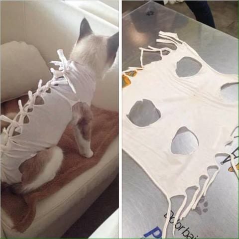 au pire vous pouvez lui faire un boddy avec un vieux tee-shirt, comme ci dessous, elle sera beaucoup moins gênée qu'avec une collerette.