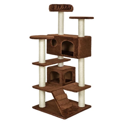 Moi je l'ai acheté sur EBAY,y a aussi du choix,est a tous les prix §il mesure 1m50 de haut,est stable est je l'ai payer 40e;peut recevoir 3 chats .avec une niche en bas ,une petite,une grande au milieux,est trois plates formes.