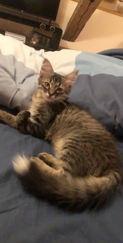 Bonjour, Je me permets d’ouvrir un sujet sur ce forum car j’essaye de comprendre et surtout de trouver à quelle race appartient mon chat. J’ai joint une photo sur laquelle on peut observer qu’il a une queue très touffue et longue, avec de grandes oreilles et des petits poils long au dessus de celles-ci. Il a le ventre tacheté et surtout des pattes assez grosses. Je précise aussi qu’il a 3 mois et pèse aux alentours des 2kg environ. Si quelqu’un peut et veut bien m’eclairer à ce niveau là je suis preneur. Dans l’attente d’une réponse je vous remercie tous et au plaisir sur le forum 😊