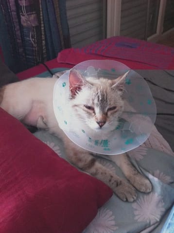 Par contre, je me pose une question : à l'endroit où les poils ont été rasés et où le pansement est collé, le ventre de Nusch pend ! Du coup, elle a les flancs tous creusés, elle qui était toute rondudu ! C'est normal ou bien ?