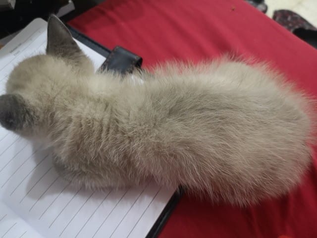 Attention, ce ventre très gonflé est la plupart du temps signe de vers. Il faudrait le vermifuger sans tarder. Les vers épuisent les chatons.