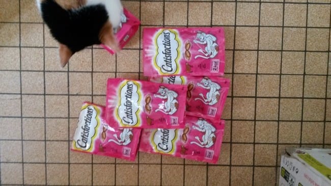 Bon après elle est pas à plaindre Noisette saucisse , tous les jours elle a ses sachets préférés ( gourmet ) et le soir ses catisfactions + ses croquettes et son arbre à chat est rempli de jouets !!! 😁