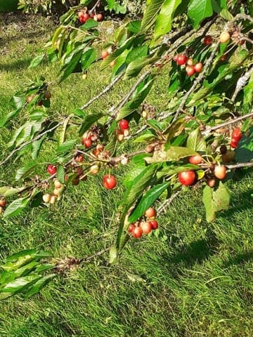 J'avais coupé la tige principale dans sa 2e année, si bien qu'il ne monte pas trop haut et que des branches arrivent jusqu'au sol, pratique pour les cueillir...