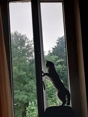 Monchéri a une belle vue sur les arbres et les oiseaux. Hier j'en ai un qui est resté prostré à regarder tête en l'air une petite mésange qui mangeait des graines que je leur ai mises (oui je sais je ne devrais pas ....) 😝