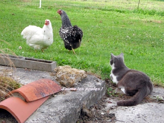 Elle est belle cette photo avec les poules, j'imagine bien le chat faire des bonds et courir à toute allure comme s'il avait le diable aux trousses.