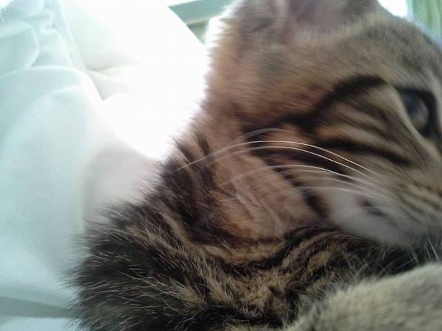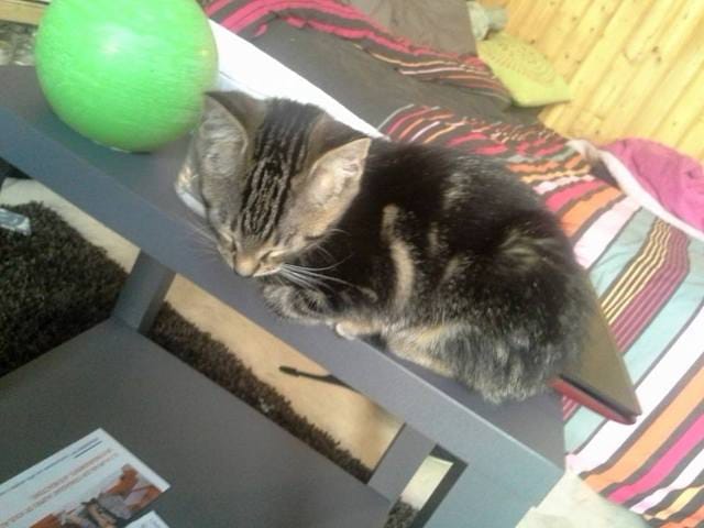 Tout est dans le titre. :) Je vous présente Croquette, elle a 3 mois et quelque jours. Je me demande si mon chaton aura les poil mi-long comme ses parents. Ses parents sont des gouttières.
