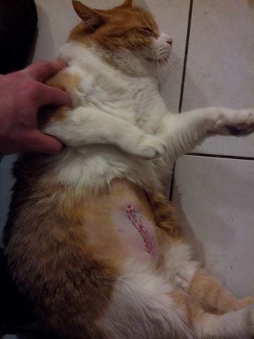 Comme certains le savent, mon Garfield de 3 ans et demi s'est fait opérer du ventre le 7 Février.