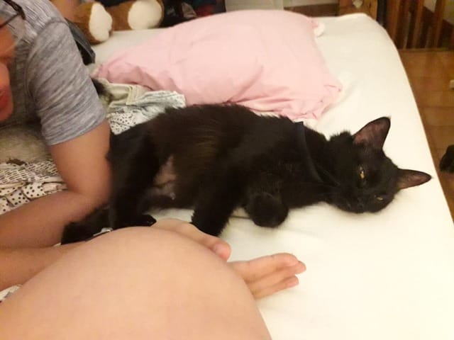 Il y a un peu plus de deux semaines, nous avons adopté une chatte de 3 ans (d'après le véto). Elle vivait avec 7 autres chats seuls dans un appartement depuis deux mois : la personne âgée était à l'hôpital et ne devait pas revenir. Une personne passait les nourrir deux fois par semaine. La famille à fini par être mise au courant et ils ont décidé de donner les chats. Nous y sommes allés pour en choisir un et nous sommes répartis avec Mushi, la plus maigre. On nous a dit qu'elle devait être stérilisée... comme vous le devinez en voyant le sujet ce n'est pas le cas.