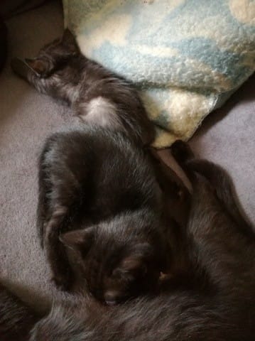 Ça se passe de mieux en mieux avec twingo et minuscule et les chatons dorment dans le panier du chien ^^