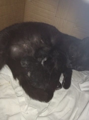 Ma chatte va mettre bas , on ne s'attendait pas à ce quelle choisisse un endroit aussi dangeureux , on ne peut ni laider en cas de soucis ni déplacer les petits après, et elle veut absolument qu'on reste avec elle ..