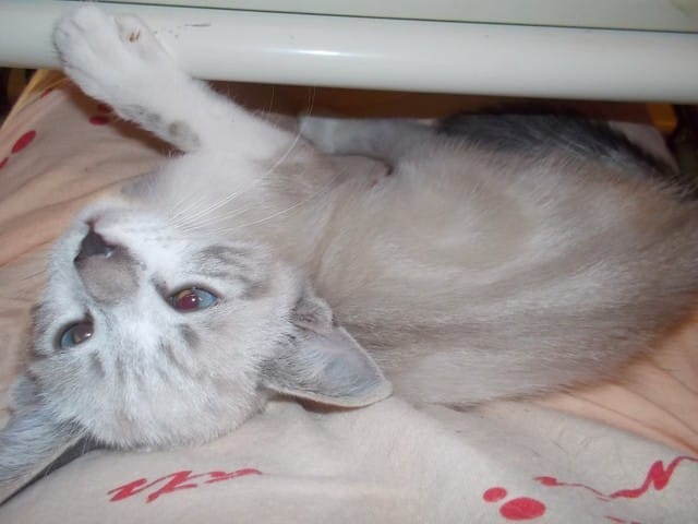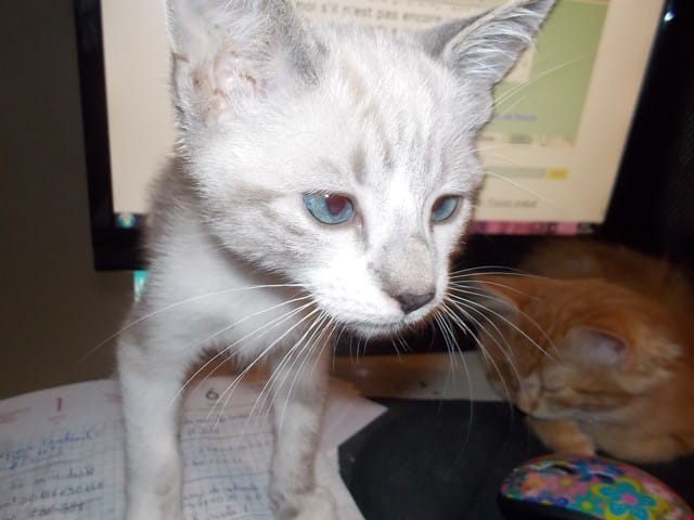 Il était le plus petit de sa fratrie. Rose a été très malade coccidiose . Ses frères sont partis a Paris,lui non a a cause de ses pertes fécales.Rose est resté chez moi en famille d'accueil définitif. je me suis aperçue qu'il aimait les mêmes choses qu Persian. Surtout jouer avec l'eau.