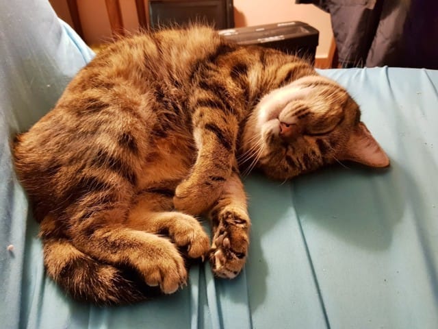 Alors Gaminou est devenu un chat suuuuuuuper câlin, il s'allonge sur moi, tend la patte si je l'ignore et je dois lui caresser la tête et surtout je ne dois pas oublier de me protéger car Gaminou quand il est en mode "câlin" il bave, une vraie fontaine.