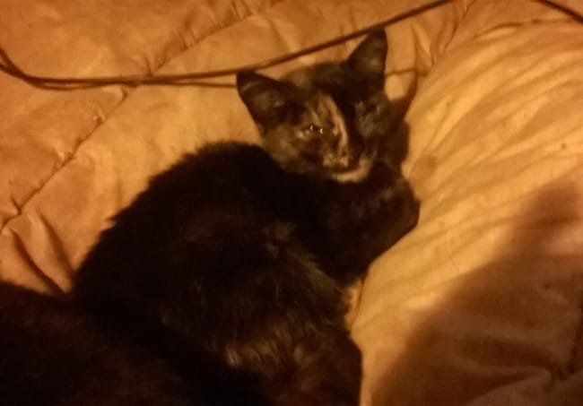 La photo est mauvaise mais bon... elle s'appelait poulette ! En fait les chats noirs et roux comme les 3 couleurs sont quasiment tous femelles. Sauf que la mienne avait une chaussette blanche comme si elle avait foutu sa patte dans un pot de peinture. Mon voisin disait qu'elle avait été mal peinte...😁