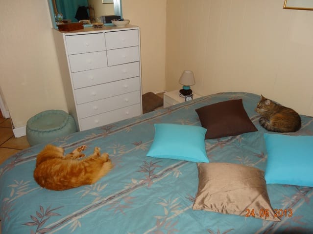 La bonne nouvelle c'est que je peux laisser la chambre ouverte, personne ne se réfugie sous le lit, ce que je craignais hier soir. Parce que non seulement il est assez bas, mais en plus il est particulièrement grand (160x200), donc si le chat ne sort pas tout seul il est irrécupérable de force.