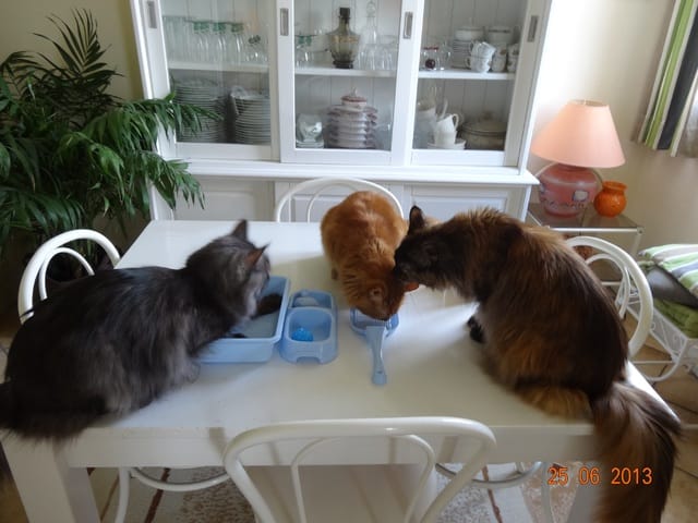 Le seul des 5 qui a mangé sa pâtée ce matin, c'est bien sûr mon ptit goinfre, BB Harley. A part lui personne n'a rien mangé depuis hier après-midi. Bon, une petite diète ne va pas leur faire de mal, ils mangeront quand ils auront super faim, mais ce qui m'inquiète davantage c'est que sauf peut-être Nounouche, personne n'est allé à la litière. Du coup ce matin j'ai mis la grande litière, celle de mes loulous, dans la salle de bain, comme ils ont l'air décidés à vivre au fond de l'appart pour l'instant au moins ils pourront faire leurs besoins. ça ne me plait pas qu'ils se retiennent comme ça. En même temps, vu qu'ils ne boivent ni ne mangent, ce n'est pas très étonnant.