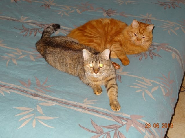 Alors voilà les news. Mes 3 loustics ont passé la soirée au fond de l'appart, Félia et Gatsby dans la chambre et BB Harley dans le bureau. Etoile n'a pas bougé de sous le meuble télé, et Nounouche était avec moi sur le canapé. Cette fifille est un amûûûûûûr de chattoune, petite glue de chez glue, toujours à rechercher les câlins et les bisous, à ronronner. Elle ne sera pas difficile à placer, du moins pour les gens qui aiment les chats sociables et très câlins.