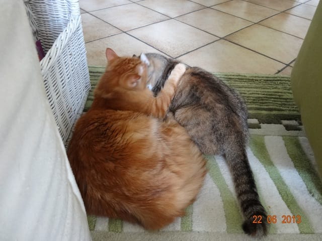 Rien à voir avec Etoile ou l'accueil, mais ils sont trop mignons mes deux rouquinoux, il y avait longtemps qu'ils n'avaient pas dormi comme ça ;) :