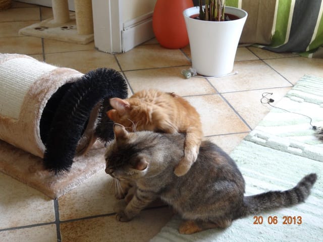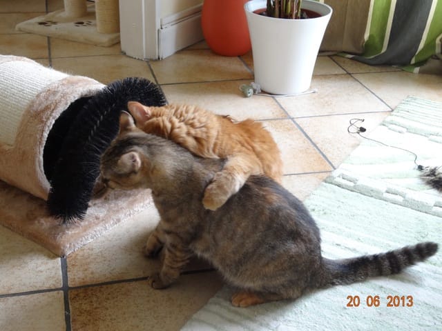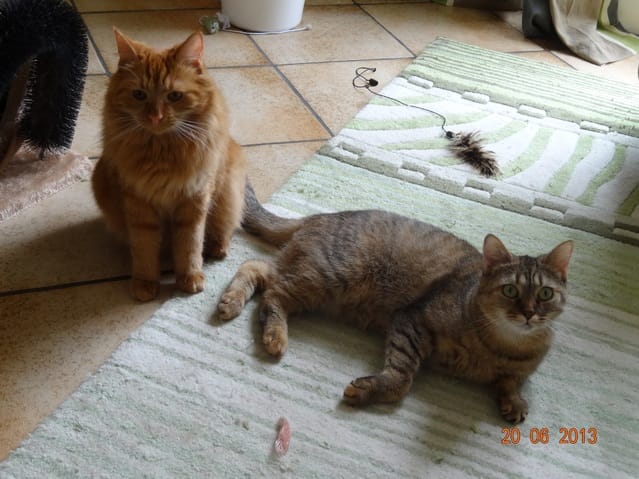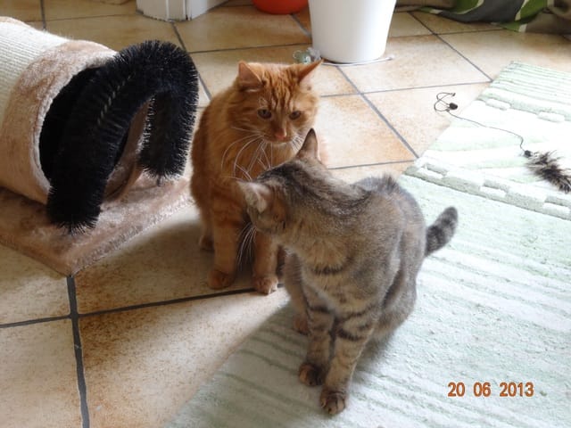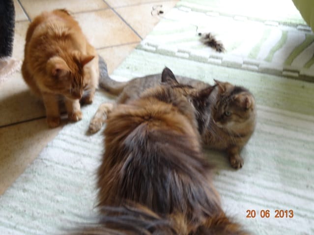 Alors voilà les news. Mes 3 loustics ont passé la soirée au fond de l'appart, Félia et Gatsby dans la chambre et BB Harley dans le bureau. Etoile n'a pas bougé de sous le meuble télé, et Nounouche était avec moi sur le canapé. Cette fifille est un amûûûûûûr de chattoune, petite glue de chez glue, toujours à rechercher les câlins et les bisous, à ronronner. Elle ne sera pas difficile à placer, du moins pour les gens qui aiment les chats sociables et très câlins.