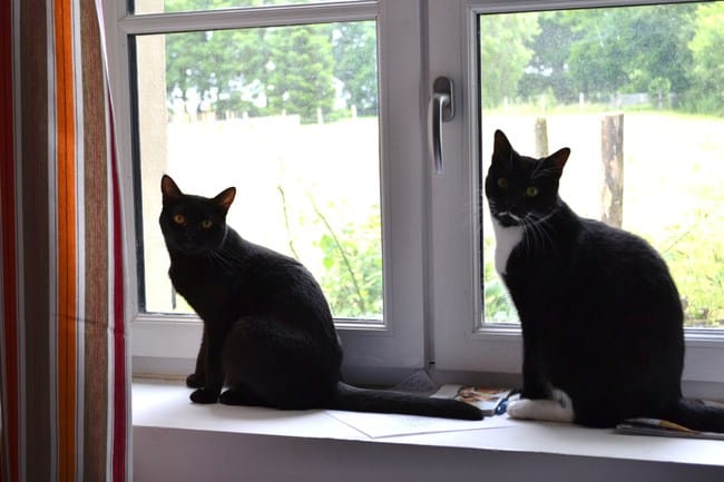 Quand je suis allée me coucher mes loulous sont restés avec moi dans la chambre, mais personne n'a beaucoup dormi ! Chaque fois que je les regardais ils étaient éveillés, Félia en train de monter la garde à l'entrée de la chambre et les deux garçons en alerte aussi. Il faut dire que Nounouche s'est mise à miauler dès mon départ du salon, et n'a dû arrêter que vers 7h00 du mat'... Mais elle n'a pas osé venir dans la chambre, et tant mieux parce qu'à mon avis ça aurait été sportif ;)