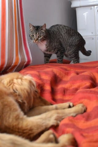 La bonne nouvelle c'est que je peux laisser la chambre ouverte, personne ne se réfugie sous le lit, ce que je craignais hier soir. Parce que non seulement il est assez bas, mais en plus il est particulièrement grand (160x200), donc si le chat ne sort pas tout seul il est irrécupérable de force.