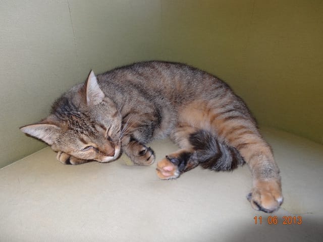 Alors voilà les news. Mes 3 loustics ont passé la soirée au fond de l'appart, Félia et Gatsby dans la chambre et BB Harley dans le bureau. Etoile n'a pas bougé de sous le meuble télé, et Nounouche était avec moi sur le canapé. Cette fifille est un amûûûûûûr de chattoune, petite glue de chez glue, toujours à rechercher les câlins et les bisous, à ronronner. Elle ne sera pas difficile à placer, du moins pour les gens qui aiment les chats sociables et très câlins.