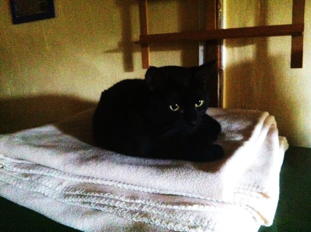 La bonne nouvelle c'est que je peux laisser la chambre ouverte, personne ne se réfugie sous le lit, ce que je craignais hier soir. Parce que non seulement il est assez bas, mais en plus il est particulièrement grand (160x200), donc si le chat ne sort pas tout seul il est irrécupérable de force.