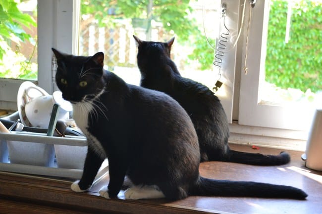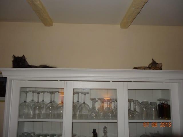 Quand je suis allée me coucher mes loulous sont restés avec moi dans la chambre, mais personne n'a beaucoup dormi ! Chaque fois que je les regardais ils étaient éveillés, Félia en train de monter la garde à l'entrée de la chambre et les deux garçons en alerte aussi. Il faut dire que Nounouche s'est mise à miauler dès mon départ du salon, et n'a dû arrêter que vers 7h00 du mat'... Mais elle n'a pas osé venir dans la chambre, et tant mieux parce qu'à mon avis ça aurait été sportif ;)