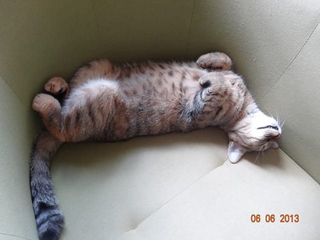 Le seul des 5 qui a mangé sa pâtée ce matin, c'est bien sûr mon ptit goinfre, BB Harley. A part lui personne n'a rien mangé depuis hier après-midi. Bon, une petite diète ne va pas leur faire de mal, ils mangeront quand ils auront super faim, mais ce qui m'inquiète davantage c'est que sauf peut-être Nounouche, personne n'est allé à la litière. Du coup ce matin j'ai mis la grande litière, celle de mes loulous, dans la salle de bain, comme ils ont l'air décidés à vivre au fond de l'appart pour l'instant au moins ils pourront faire leurs besoins. ça ne me plait pas qu'ils se retiennent comme ça. En même temps, vu qu'ils ne boivent ni ne mangent, ce n'est pas très étonnant.
