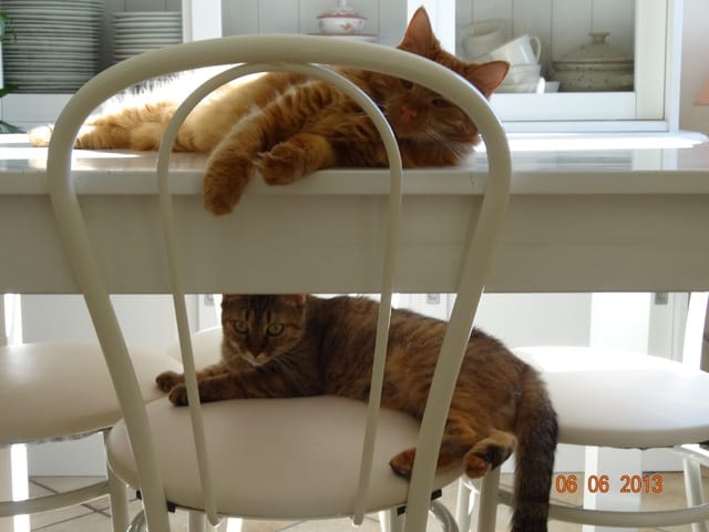 Alors voilà les news. Mes 3 loustics ont passé la soirée au fond de l'appart, Félia et Gatsby dans la chambre et BB Harley dans le bureau. Etoile n'a pas bougé de sous le meuble télé, et Nounouche était avec moi sur le canapé. Cette fifille est un amûûûûûûr de chattoune, petite glue de chez glue, toujours à rechercher les câlins et les bisous, à ronronner. Elle ne sera pas difficile à placer, du moins pour les gens qui aiment les chats sociables et très câlins.