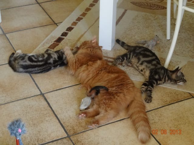 Alors voilà les news. Mes 3 loustics ont passé la soirée au fond de l'appart, Félia et Gatsby dans la chambre et BB Harley dans le bureau. Etoile n'a pas bougé de sous le meuble télé, et Nounouche était avec moi sur le canapé. Cette fifille est un amûûûûûûr de chattoune, petite glue de chez glue, toujours à rechercher les câlins et les bisous, à ronronner. Elle ne sera pas difficile à placer, du moins pour les gens qui aiment les chats sociables et très câlins.