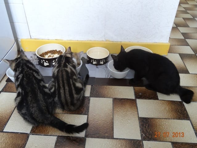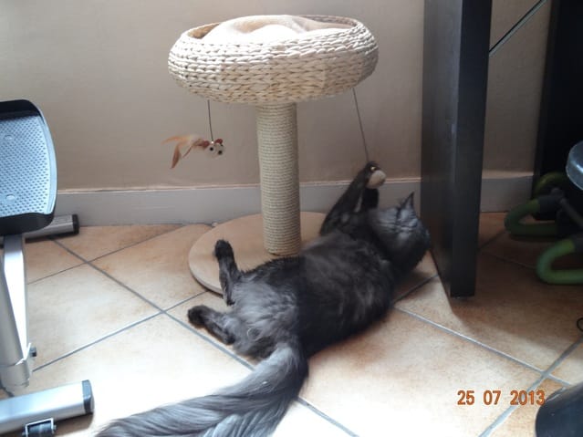 Le seul des 5 qui a mangé sa pâtée ce matin, c'est bien sûr mon ptit goinfre, BB Harley. A part lui personne n'a rien mangé depuis hier après-midi. Bon, une petite diète ne va pas leur faire de mal, ils mangeront quand ils auront super faim, mais ce qui m'inquiète davantage c'est que sauf peut-être Nounouche, personne n'est allé à la litière. Du coup ce matin j'ai mis la grande litière, celle de mes loulous, dans la salle de bain, comme ils ont l'air décidés à vivre au fond de l'appart pour l'instant au moins ils pourront faire leurs besoins. ça ne me plait pas qu'ils se retiennent comme ça. En même temps, vu qu'ils ne boivent ni ne mangent, ce n'est pas très étonnant.