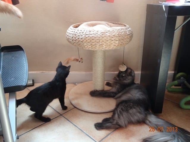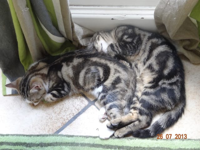 Alors voilà les news. Mes 3 loustics ont passé la soirée au fond de l'appart, Félia et Gatsby dans la chambre et BB Harley dans le bureau. Etoile n'a pas bougé de sous le meuble télé, et Nounouche était avec moi sur le canapé. Cette fifille est un amûûûûûûr de chattoune, petite glue de chez glue, toujours à rechercher les câlins et les bisous, à ronronner. Elle ne sera pas difficile à placer, du moins pour les gens qui aiment les chats sociables et très câlins.