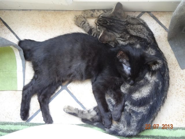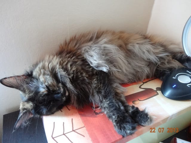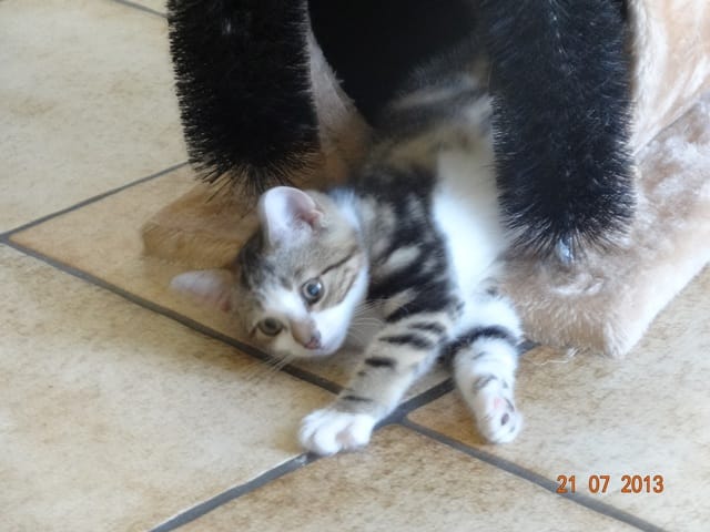 Alors voilà les news. Mes 3 loustics ont passé la soirée au fond de l'appart, Félia et Gatsby dans la chambre et BB Harley dans le bureau. Etoile n'a pas bougé de sous le meuble télé, et Nounouche était avec moi sur le canapé. Cette fifille est un amûûûûûûr de chattoune, petite glue de chez glue, toujours à rechercher les câlins et les bisous, à ronronner. Elle ne sera pas difficile à placer, du moins pour les gens qui aiment les chats sociables et très câlins.