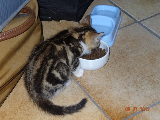 Twisty (que j'ai enfin réussi à extirper de sous le lit) en plein casse-croûte