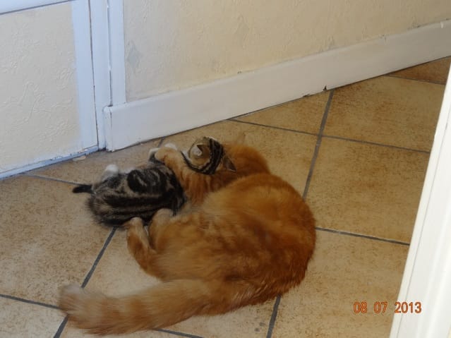 Et la meilleure pour la fin, mon adorable gros BB en train de faire une tite toilette à Twisty :