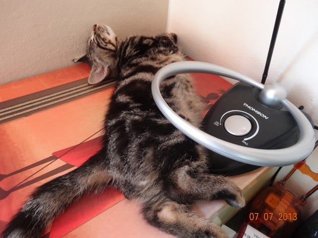 La bonne nouvelle c'est que je peux laisser la chambre ouverte, personne ne se réfugie sous le lit, ce que je craignais hier soir. Parce que non seulement il est assez bas, mais en plus il est particulièrement grand (160x200), donc si le chat ne sort pas tout seul il est irrécupérable de force.