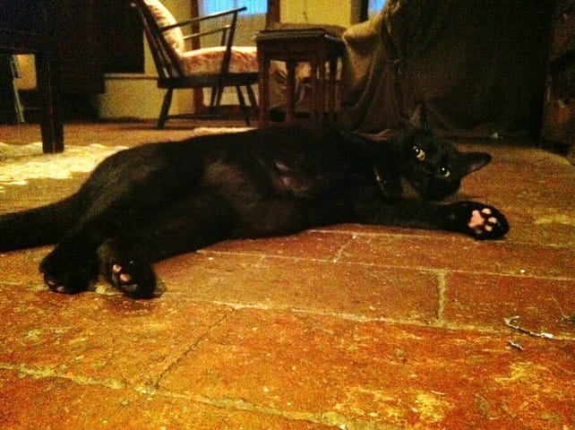 La bonne nouvelle c'est que je peux laisser la chambre ouverte, personne ne se réfugie sous le lit, ce que je craignais hier soir. Parce que non seulement il est assez bas, mais en plus il est particulièrement grand (160x200), donc si le chat ne sort pas tout seul il est irrécupérable de force.