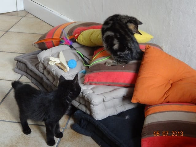 Alors voilà les news. Mes 3 loustics ont passé la soirée au fond de l'appart, Félia et Gatsby dans la chambre et BB Harley dans le bureau. Etoile n'a pas bougé de sous le meuble télé, et Nounouche était avec moi sur le canapé. Cette fifille est un amûûûûûûr de chattoune, petite glue de chez glue, toujours à rechercher les câlins et les bisous, à ronronner. Elle ne sera pas difficile à placer, du moins pour les gens qui aiment les chats sociables et très câlins.