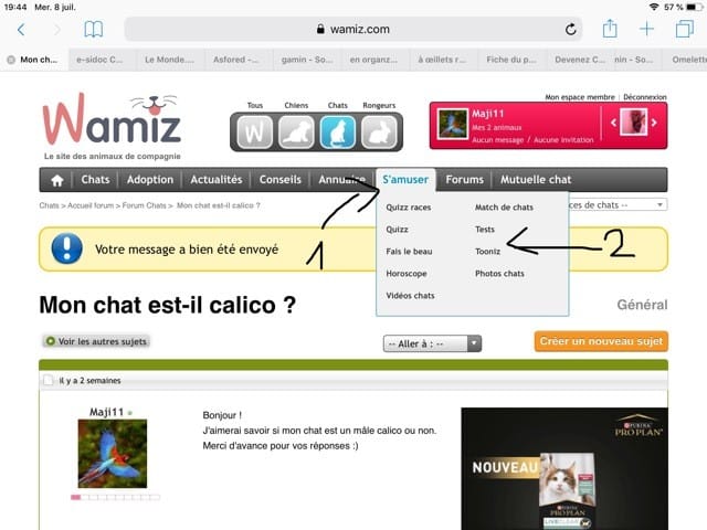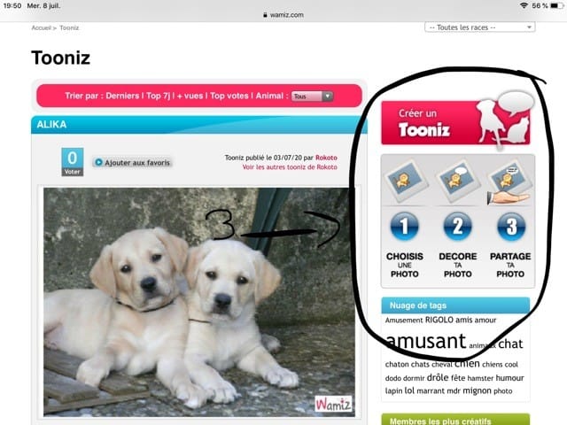 Pour faire un tooniz, tu peux aller dans « s’amuser » puis dans « tooniz » ensuite tu appuie sur créer un tooniz 🙂