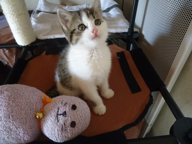 Leonie , le chaton a quel âge sur la 1ère photo ? Et sur la 2ème ?