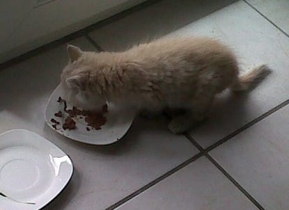 Oui il a même bien mangé. (Paté et lait spéciale chaton)