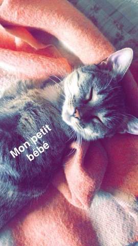 Je vous présente Naya, elle a environ 1 an et 2 mois. Je dis "environ" car j'ai trouvé ma petite princesse le 15 septembre 2015. Je rentré chez moi quand une femme me dit qu'il y a un chaton dans un buisson, je jete un coup d’œil et là je vois une toute petite boule de poils, affamé, toute faible et j'en passe... Je décide de la prendre avec moi et de l'adopter malgré les nombreuses personne sur le chemin qui me disaient qu'elle aller mourir.