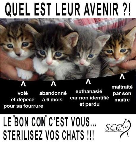 Ce message concerne les particuliers avec une chatte non stérilisée - Personne n'a le doit de saturer les possibilités de placer en laissant naître des chatons, le faire ressort de la bêtise humaine.