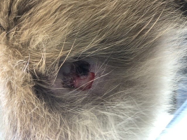 Depuis hier il se lèche a cet endroit, mais ce matin la plaie était comme ci dessous.